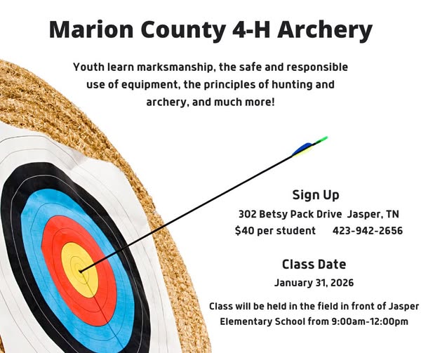 The Archery portion of the Marion County Shooting Sports Program is facilitated by Dannie Bradford. For more information contact her at (423) 942-2656 or send an email to: elowrey@utk.edu